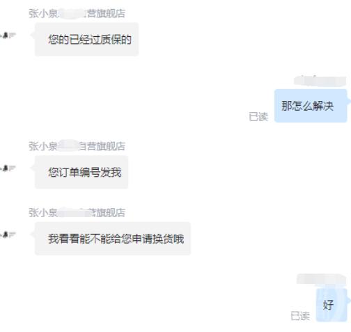 图片来源:客服对话截屏客服:横拍断刀面可申请换货