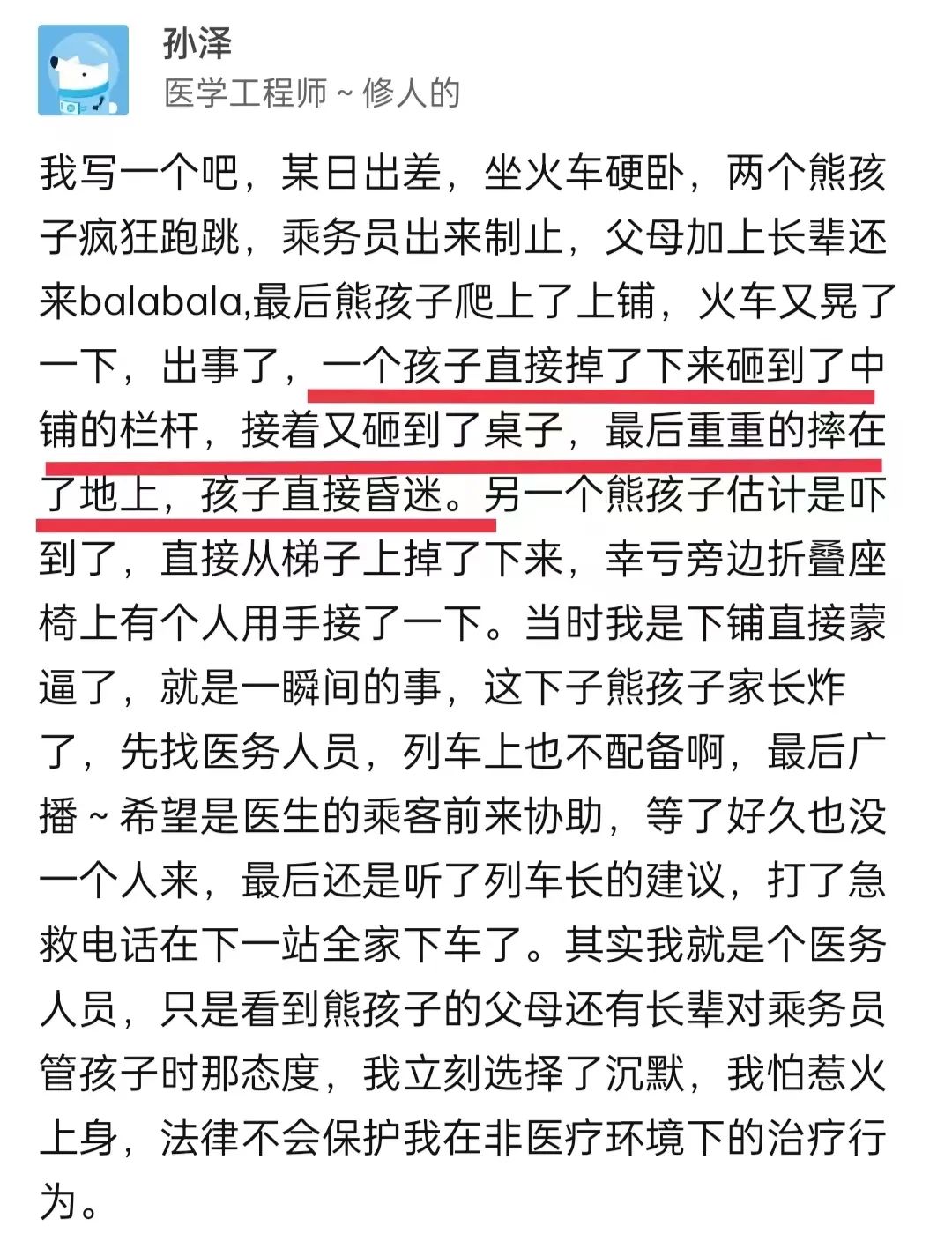 而这一幕,就发生在下铺这位医生眼前。