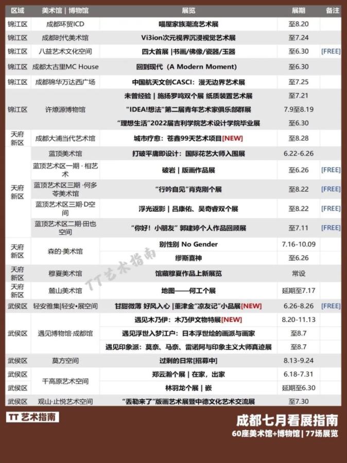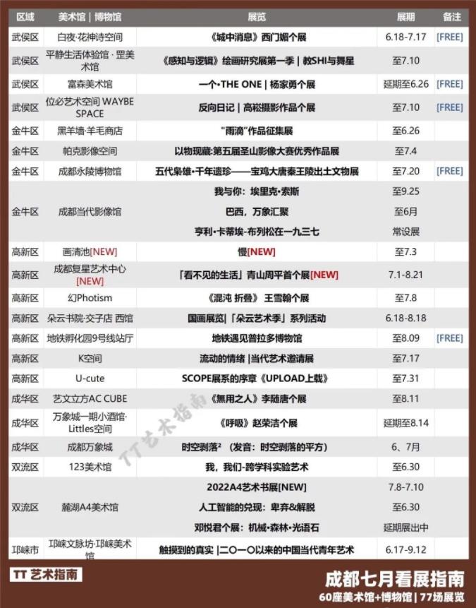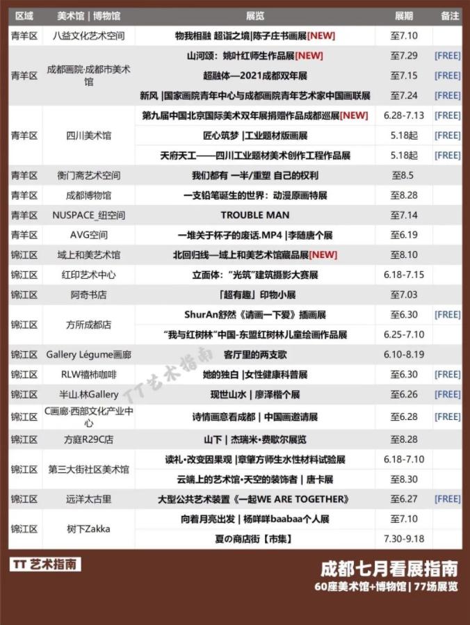 成都7月77场展览列表