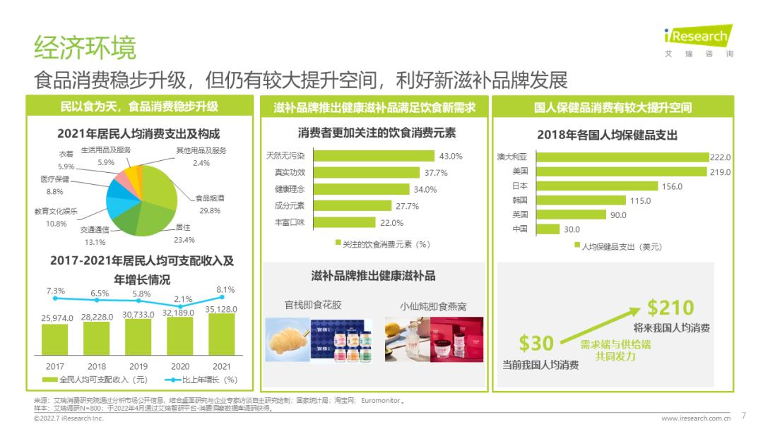 食品消费稳步升级,但仍有较大提升空间,利好新滋补品牌发展