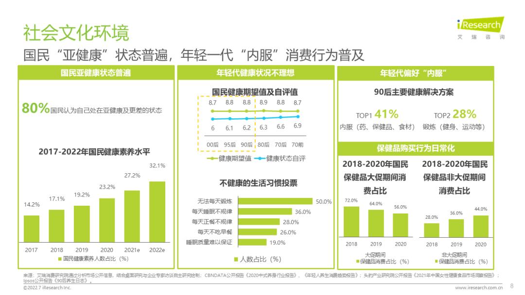 国民“亚健康”状态普遍,年轻一代“内服”消费行为普及