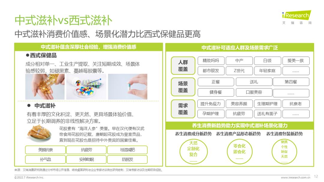 中式滋补消费价值感、场景化潜力比西式保健品更高
