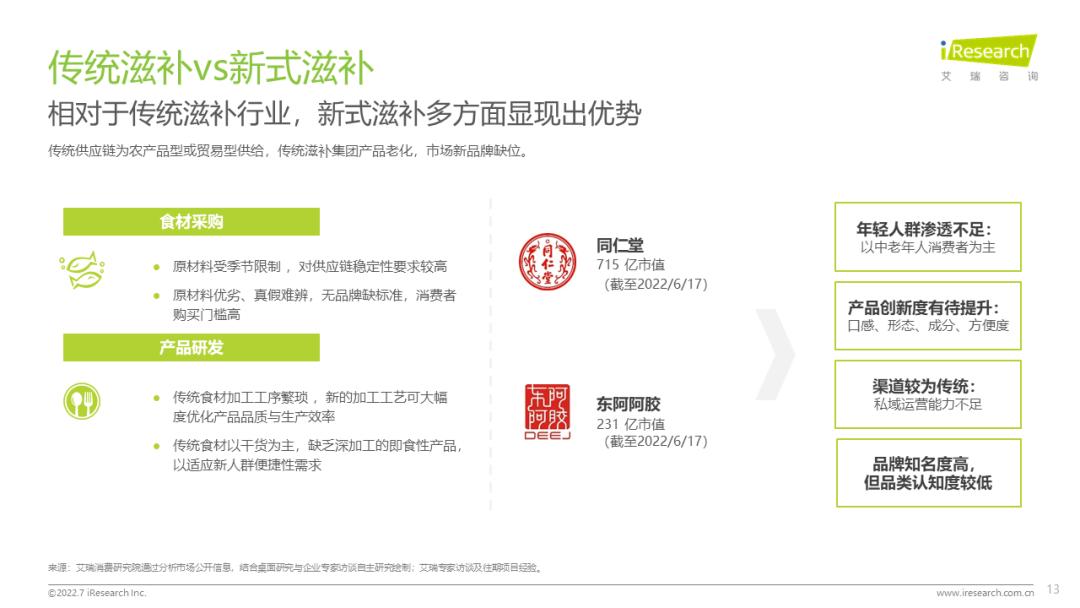 相对于传统滋补行业,新式滋补多方面显现出优势