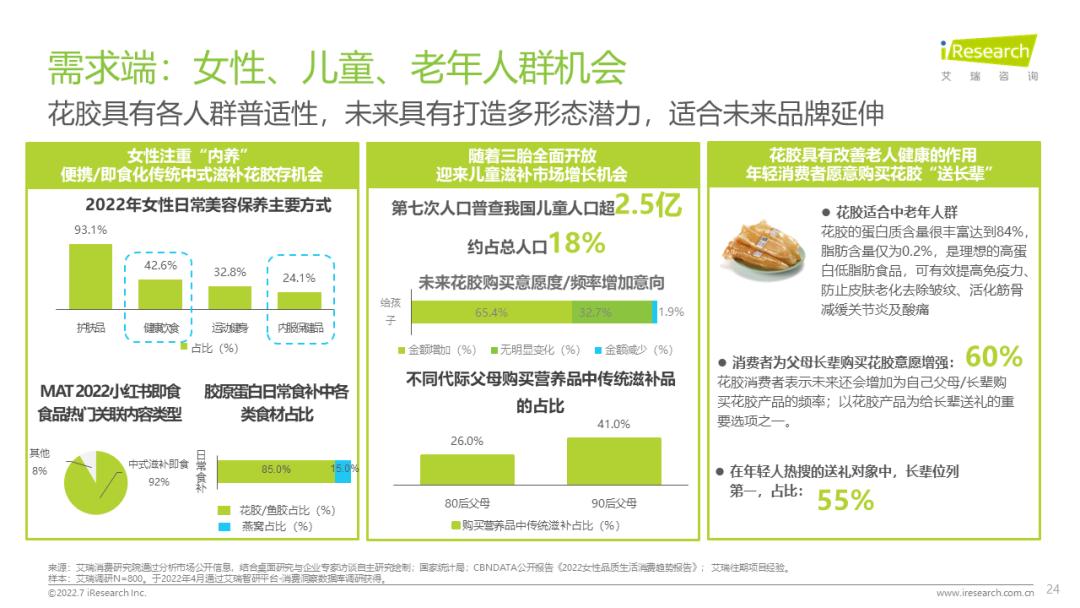 需求端:花胶具有各人群普适性,未来具有打造多形态潜力,适合未来品牌延伸