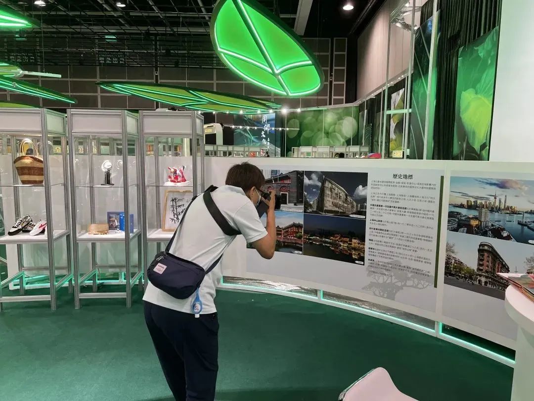 香港市民在普陀区展台驻足参观、拍照