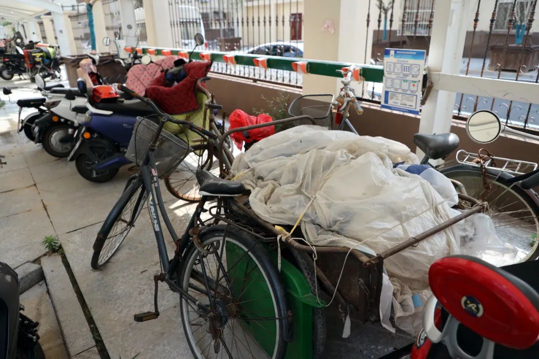 一位居民告诉记者,这辆三轮车是他们家的,由于大家都把车子放在这里,所以他也停了。这位居民表示,如果有人需要充电的话,可以将三轮车往北边挪一下。“说是充电桩,其实大家都把这里当成了一个停车棚,很少有人在这里充电。”