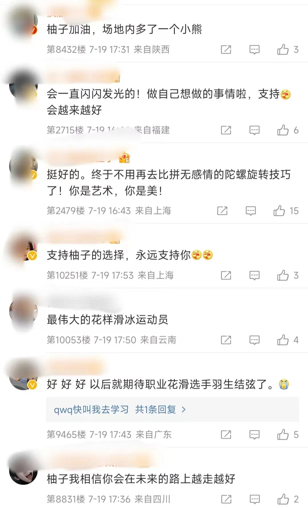 有网友为羽生结弦加油打气,也有网友表达不舍职业生涯中,羽生结弦完成双圈大满贯。十几年来,羽生结弦演绎了多套优美的节目,技术与艺术达到完美融合,受到不少冰迷的喜爱。