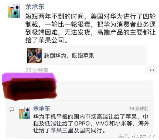 去年,网络上一篇名为《跌倒华为,吃饱苹果》的文章获得广泛关注,余承东也亲自评论,称“华为在高端手机市场的份额主要让给了苹果。”