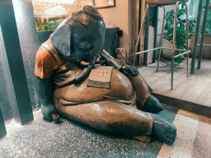 书店里正在打瞌睡的大象一家书店,正是因为有了书籍和人,才会有故事,才会有生命。