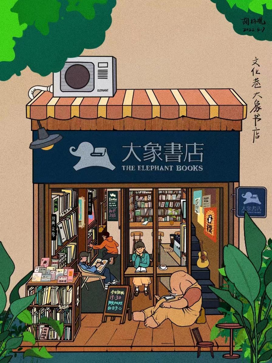 大象书店手绘图小胡说,这是最近画的最特别也最满意的一张图了。