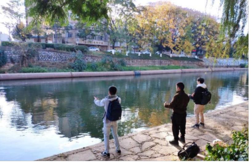 楷诚说:“我们每天会背上30分钟左右,先是非常大声地对着江水朗读,如果能记下来之后就合起书来背诵。先背完的人就在旁边晨练一会儿,等大家都会背了就去旁边米线店甩(昆明方言“吃”的意思)一碗米线,再去书店开门。”