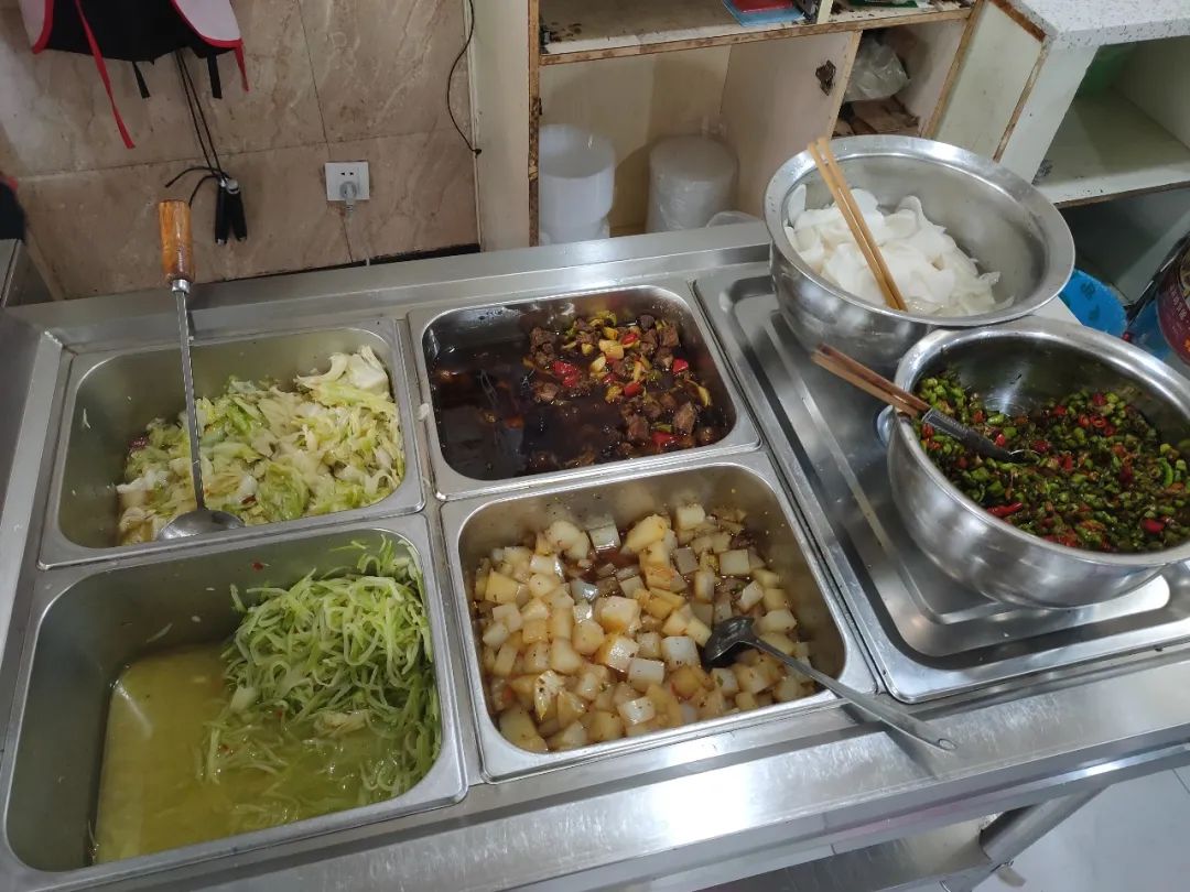 老板娘喊我们随便捞“还可以自己打米汤哈!”