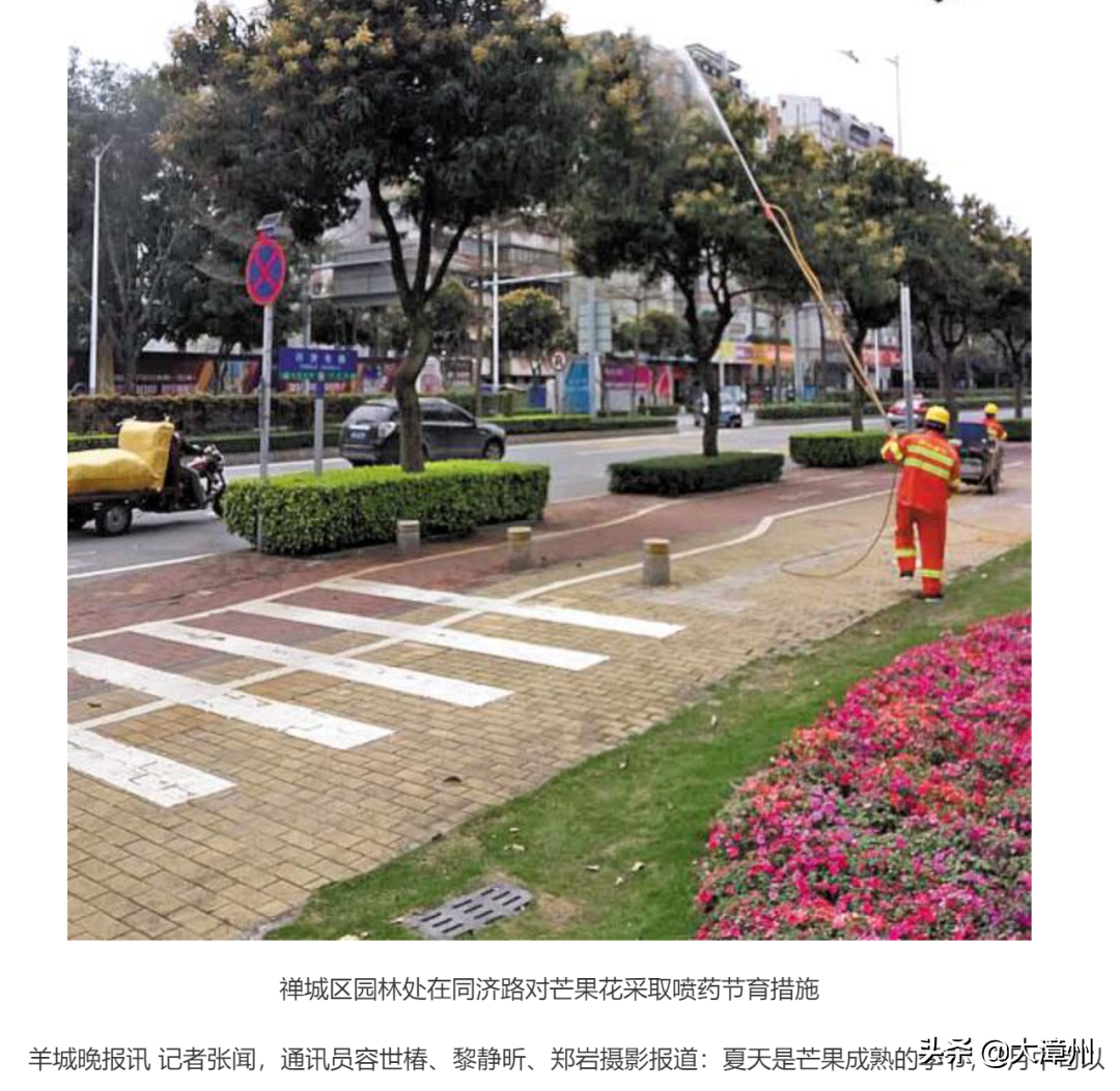 现在是芒果成熟季啦,你是不是在路上看到很多工人在捅芒果呢?是的,每年这个时候,园林中心不仅会安排人来打挂果,同时也会安排人在路上及时收拾掉落的芒果。所以,你被砸中的机会,不是很大的啦。