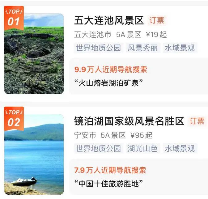 自驾游“跨城短途”热门目的地,最热的前两位是五大连池风景区,9.9万人近期导航搜索;镜泊湖国家级风景名胜区,7.9万人近期导航搜索。原标题:《大数据:哈尔滨人“近郊自驾”热门景区TOP5出炉!“跨城短途”最爱去的是……》