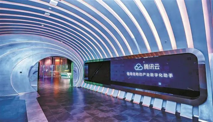 腾讯探索打造数字创新联合体,构建共享创新的数字科创生态。图为腾讯展厅腾讯云项目介绍。人们熟知的是QQ、微信,看到的是腾讯股价在资本市场上的飘逸走位……而在这一切“耳熟能详”的背后,“鹅厂”早已走出企鹅时代,成为以高质量社交生态为基本盘,全方位拓展产品矩阵,并大手笔布局大数据、AI、云计算等前沿科技的高科技公司。