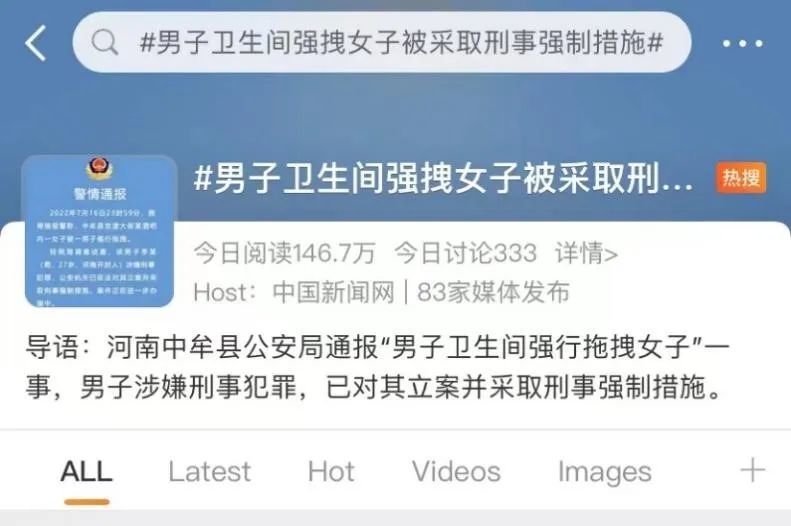最新进展来了!近日发生的「女子在酒吧厕所被男子强行拖进隔间」一事,据通报显示,男子已被采取刑事强制措施。