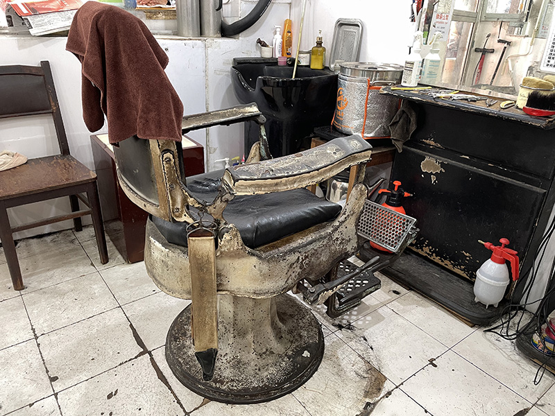 店内摆放着一把老旧的铸铁理发椅,如今已有几十年的历史。澎湃新闻见习记者 徐祯曜 图