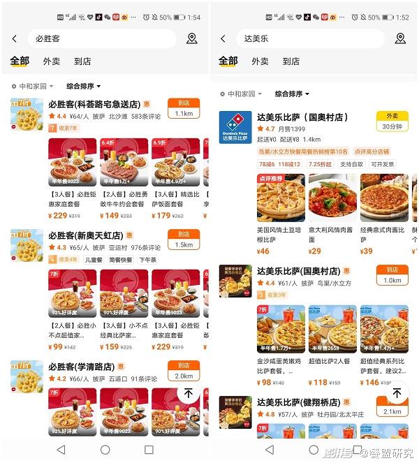 (图片来源:外卖平台必胜客/达美乐搜索截图)