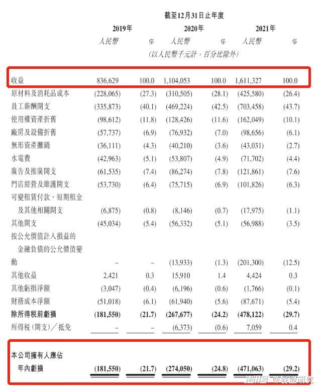 加速扩张下,达美乐的亏损不断加剧,2019年、2020年及2021年,净亏损分别为1.82亿元、2.74亿元及4.71亿元。