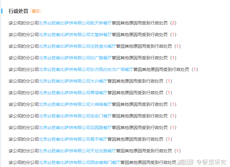 但事实上,除了被曝光的两家直营店,多家必胜客门店均受到过行政处罚。