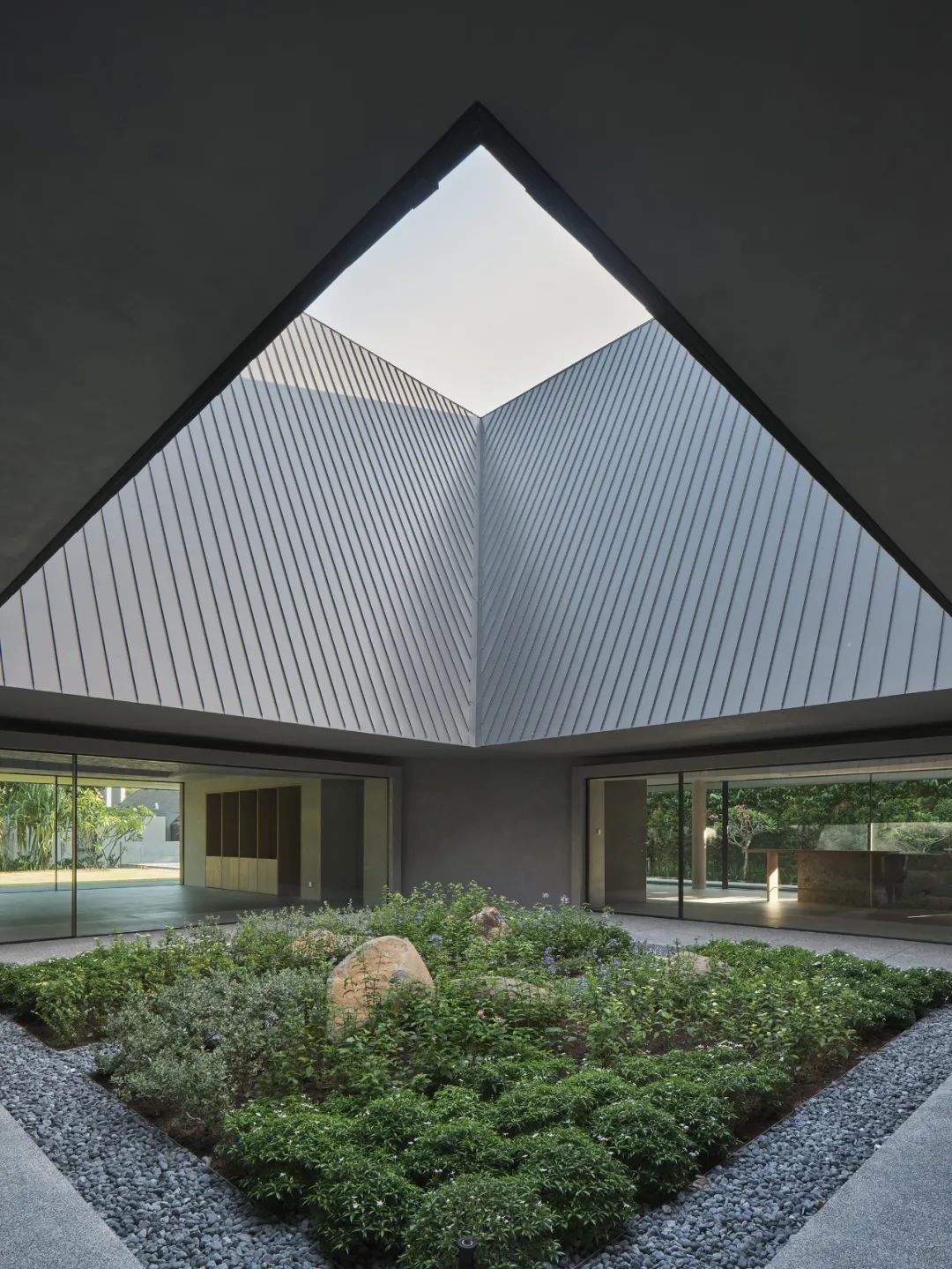 “我们有意地控制了庭院的大小。不能太小,否则引入的自然光不够,室内外都昏暗;也不能太大,否则看上去像酒店的公共空间,少了故事性。”郭锡恩说。