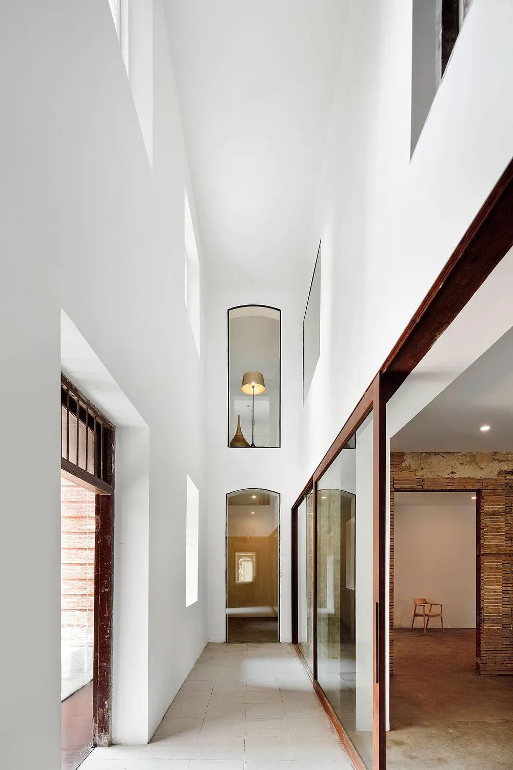 4个私密的卧室,都被“抬升”到二楼,由走廊相连。整个房子里,还有3处“双层挑高空间”,它们如同开在二楼的“瞭望口”。站在二层走廊,能通过这些“瞭望口”看到楼下的客厅、餐厅或厨房。“楼上、楼下不是彼此隔绝的,人们守住了隐私,但常常能感受到家人的存在,可以相互照应。”