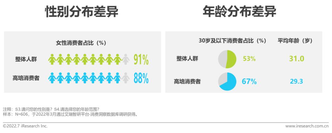 高培消费者画像相比整体调研人群,高培消费者体现出以高线、年轻、多金女性为主的特征