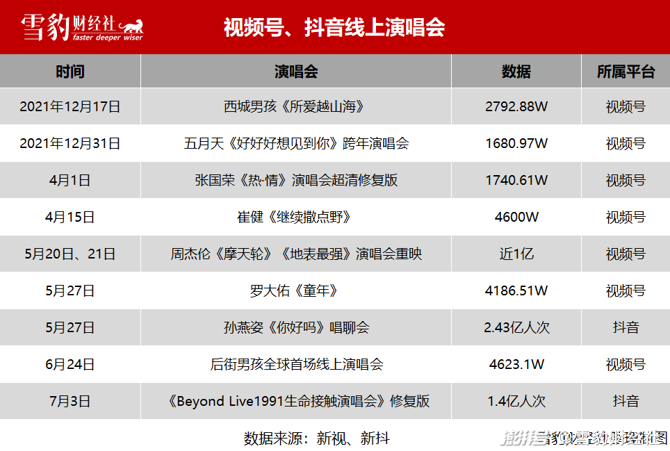 但赚钱恐怕还不是视频号最主要目的。雪豹财经社认为,视频号做线上演唱会,还有两个更重要的目标。其一,是获取流量,培养用户习惯,其二,则是利用大IP的头部效应,让更多的创作者看到希望,从而丰富视频号的内容生态。