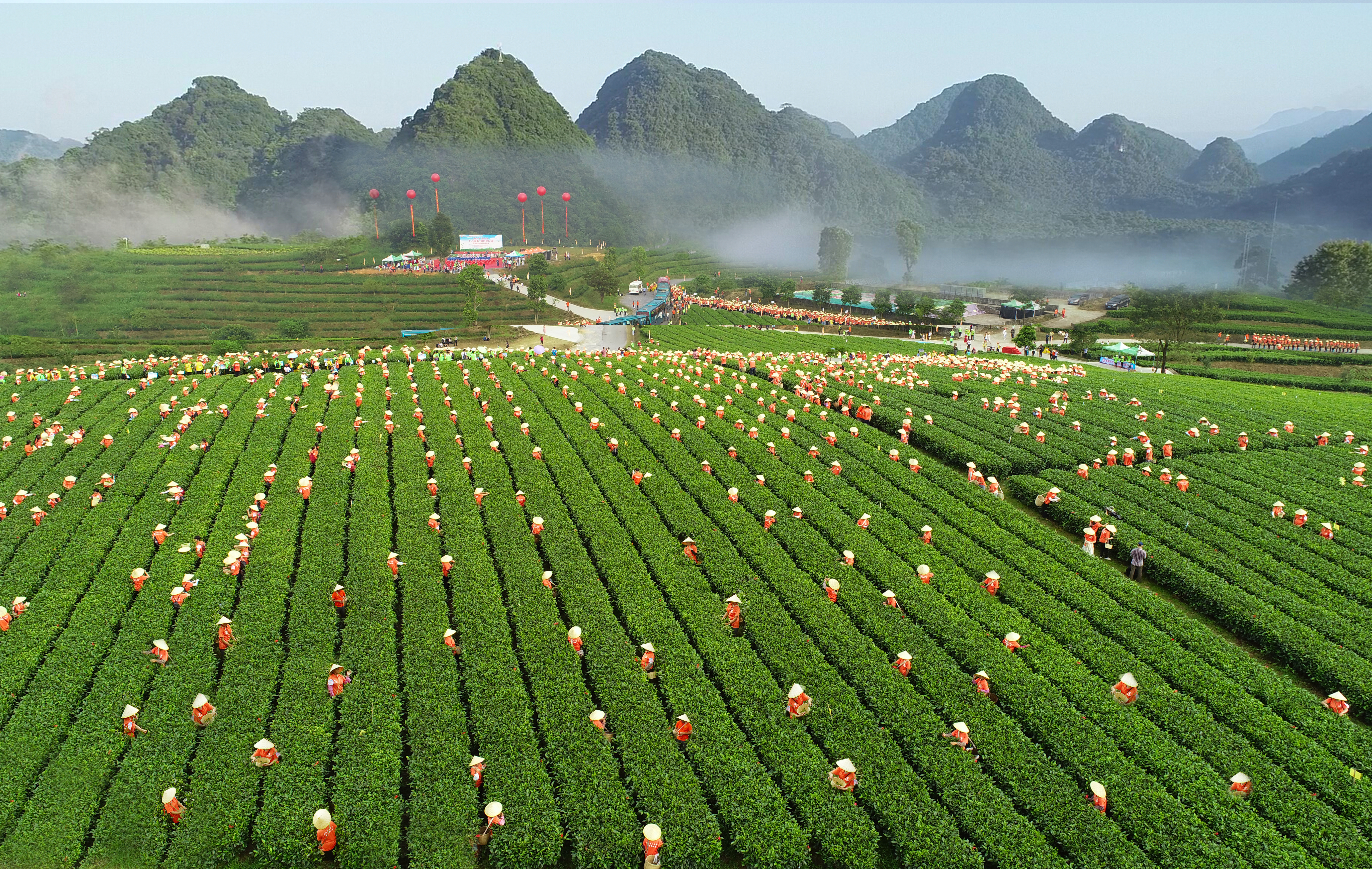 英德红茶现代农业产业园建成标准化茶叶种植基地,并举办“千人采茶·创世界纪录”暨茶园风光摄影等活动。广东省农业农村厅产业园办供图