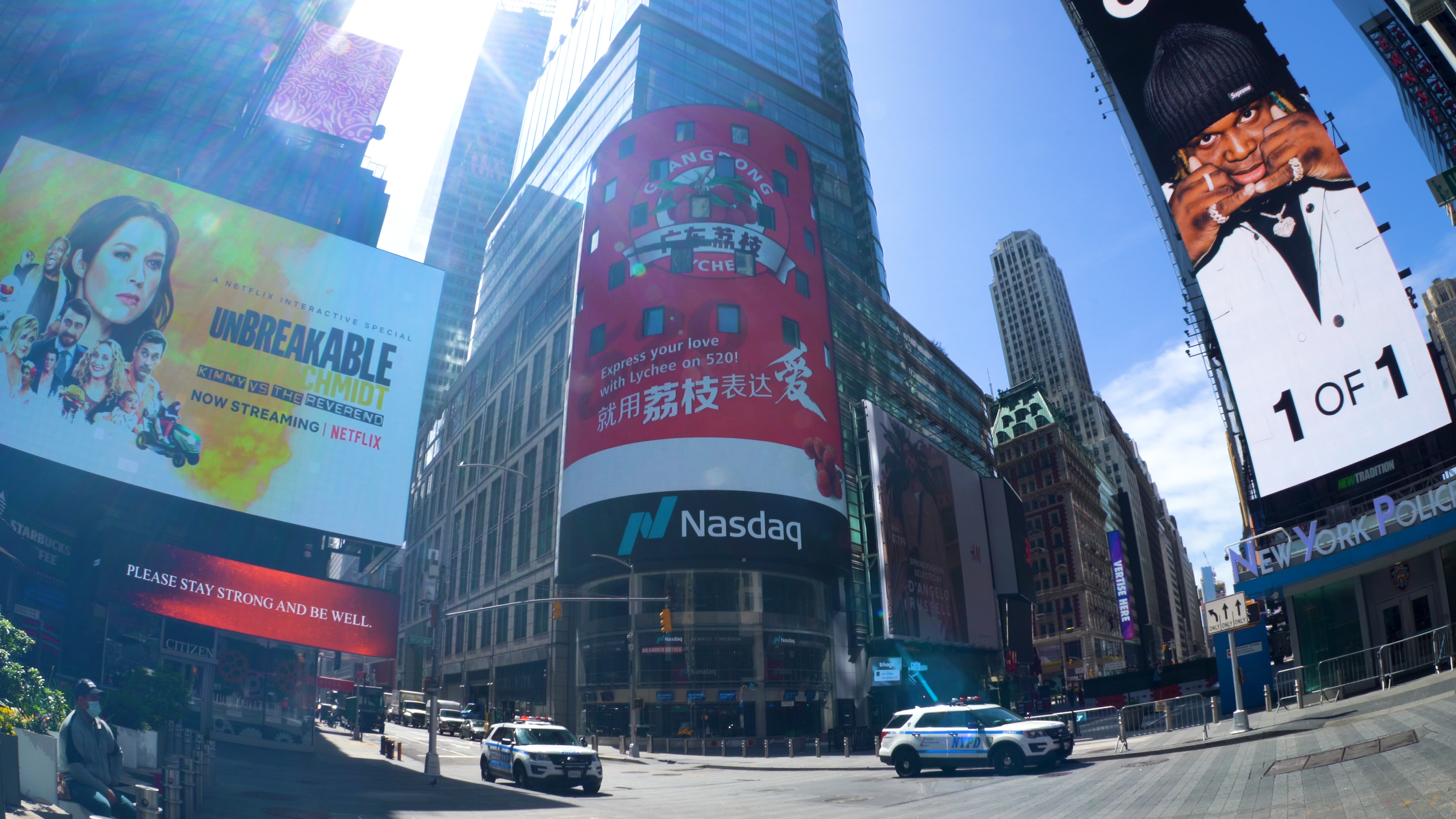 “广东荔枝”亮相海内外大都市繁华商圈,登上广州塔、纽约纳斯达克屏等。资料图
