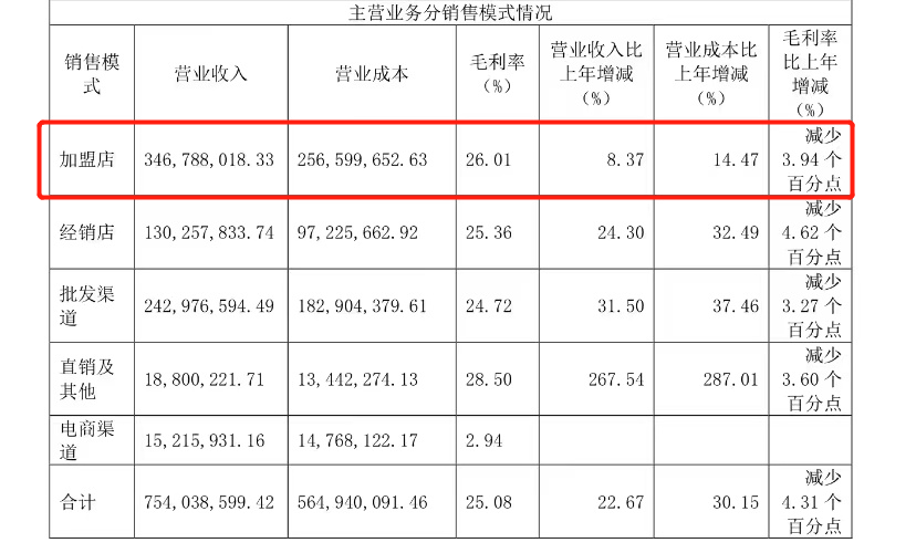 号称预制菜第一股的味知香,主要模式也是靠加盟商在线下拓店。根据其2021年报,加盟店的毛利率为26.01%,每家加盟店每年的毛利为6.8万元。