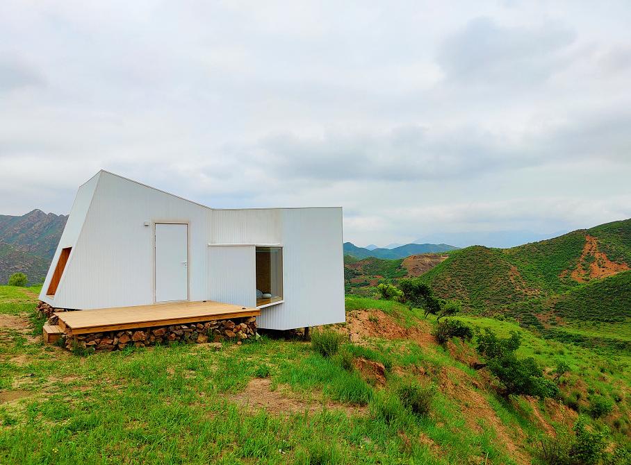 一望无际的山地上,只有一栋白色的铝皮木屋孤零零地立在那里。