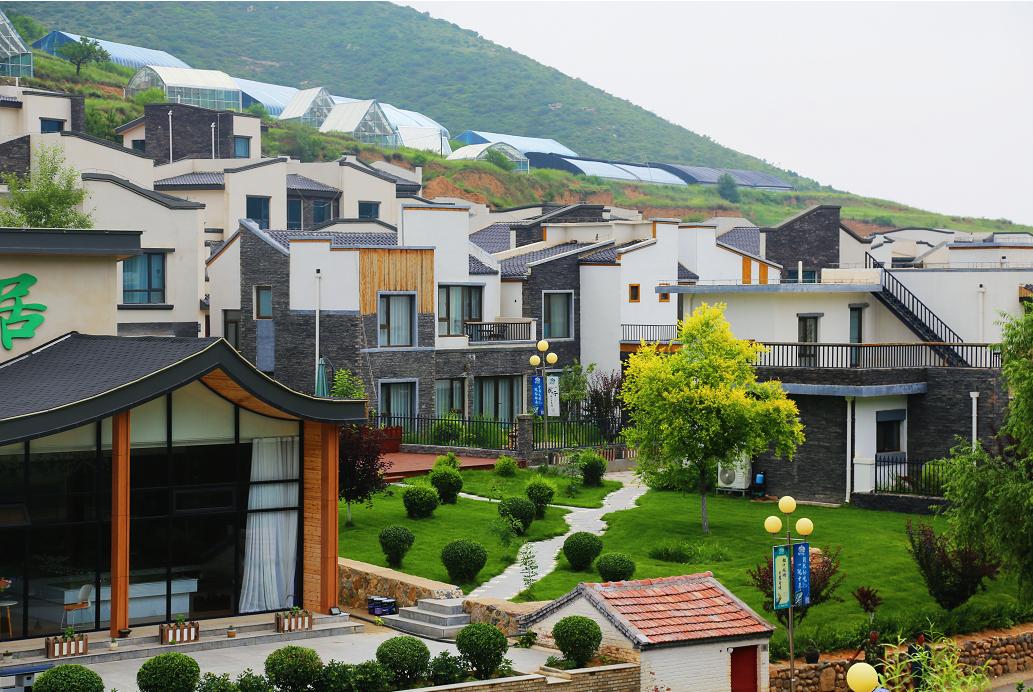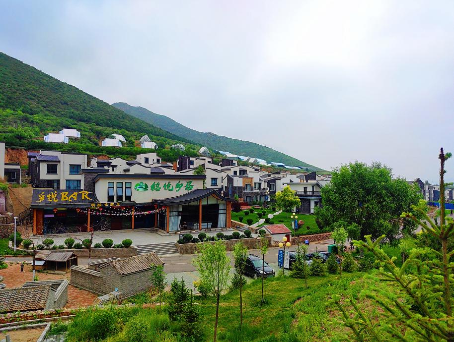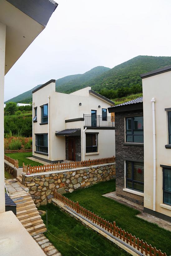 青山之下一片白房子,很是壮观,这就是赤城的铭悦乡居。