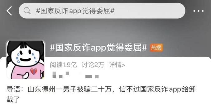话题 #国家反诈app觉得委屈#