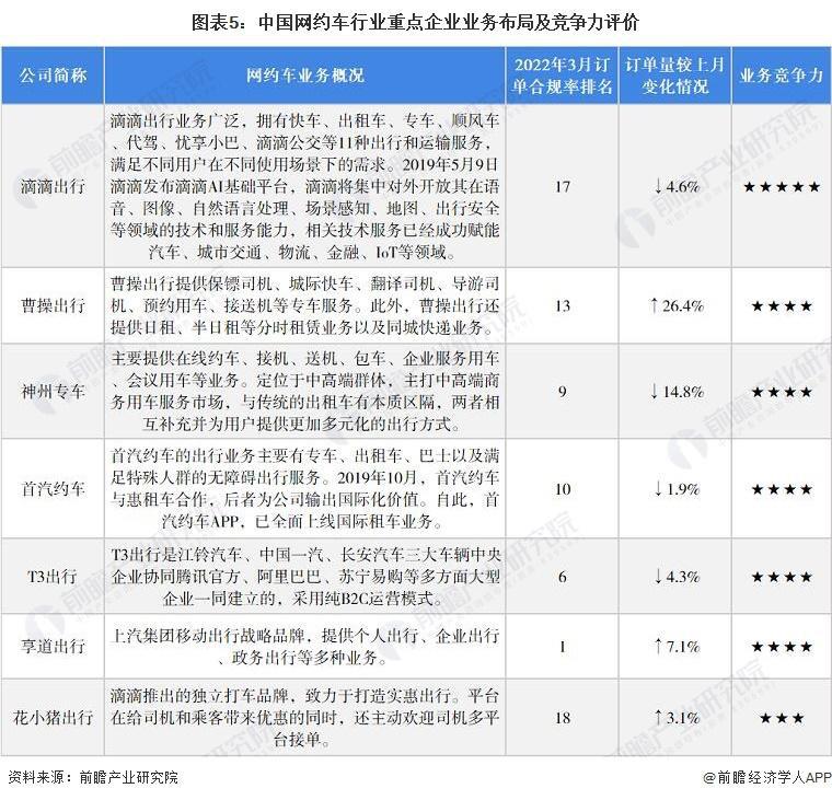 据前瞻产业研究院发布的中国网约车行业重点企业业务布局及竞争力评价称,滴滴的业务竞争力依然是五颗星,是所有网约车服务提供商中最高的。