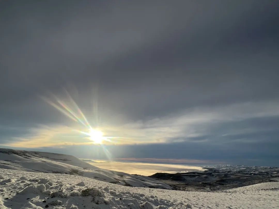 推开房门,泛红的晨曦与皎洁的灯光照亮了营地,冬日携手白雪来到了我们眼前,纵使正值家乡伏日,置身于此,感受到的是皑皑白雪带来的清凉,与凛凛寒风吹来的清爽。每每一天工作结束,坐在归途的大巴车上,远眺那镶满金边的雪山,感受滚烫而又热烈的云海。车内温度刚好,夕阳西下又何妨,我知道,南半球的日头落了,新的希望又将升起在对面的北方。