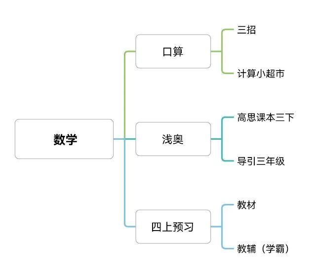 3. 预习四上数学课本:选关键章节过一下概念,有个意识知道要学什么内容),晚上妈妈辅导。