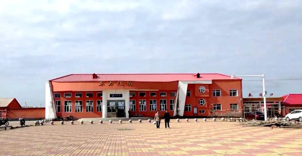 新建东方红站外景东方红站地处我们铁路网东部终端,始建于1958年,站名由时任农垦部部长王震将军在视察密东(密山至东方红)铁路建设时期亲自命名。历经60余年,该站已成为十万转业官兵开发建设“北大荒”的历史见证。