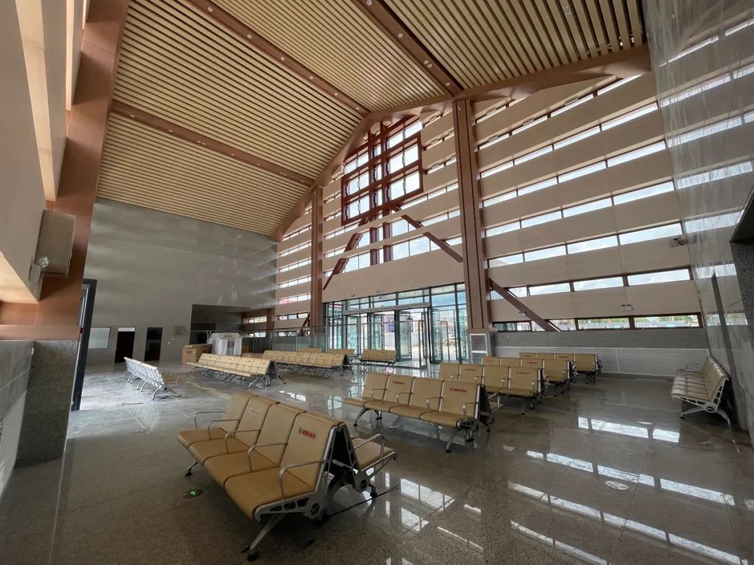 室内实景图东方红新站共有地下和地上三层、建筑面积约1800平方米,新建站房从进出站设置上采用“平进平出”模式,更适应铁路“公交化”的高效运转,实现与城市交通的紧无缝衔接,旅客换乘更加便捷。