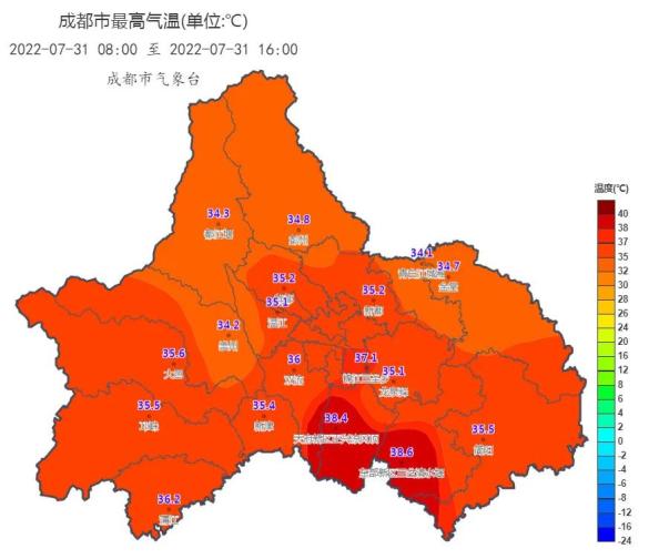 据成都市气象台预报分析,预计8月我市平均气温为26.5℃,较常年同期(25.4℃)偏高1.1℃,8月上旬有阶段性高温天气,特别是上旬后期部分时段最高气温可达35~37℃。