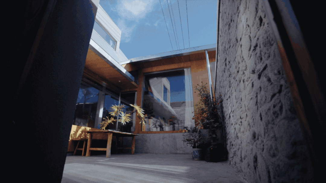 “这个事儿其实挺难的。村子本身就处在两座山中间的谷底,而这个院子又在整个村的最低点。虽是青山环绕,却很难感受到周边的景致,目之所及只有周围密密层层的屋顶和一小片天空,”成直回忆。