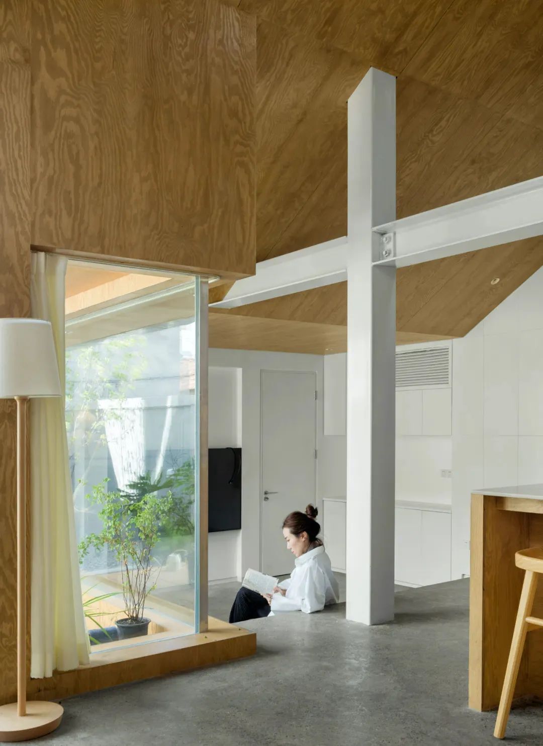 ▲暴露在外的屋梁展现了西边房子原来的层高,除此之外空间内没有任何阻挡物