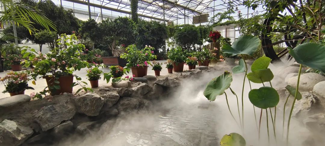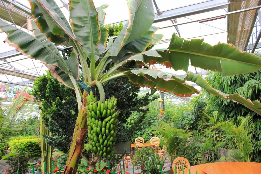 成丛的竹子伴随轻风婆娑,枝叶茂密的榕树、棕榈树旺盛生长,芭蕉树上,硕果累累……漫步其中,仿佛置身热带丛林。