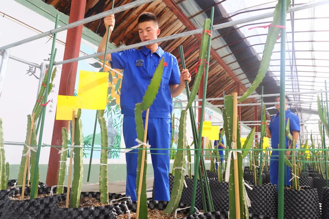 2022年3月,张俊所在的铁路管理处农副业生产基地被确定为“浙江大学新品种农产种植试点单位”,双方共同建成戈壁农业联合实验室,车厘子、无花果、柑橘、龙眼、枇杷等热带水果相继被引进种植。浙江大学与戈壁温棚数据直连,设有监管系统时刻预警,张俊根据专家们反馈的建议,及时调节空气湿度、基质配比。
