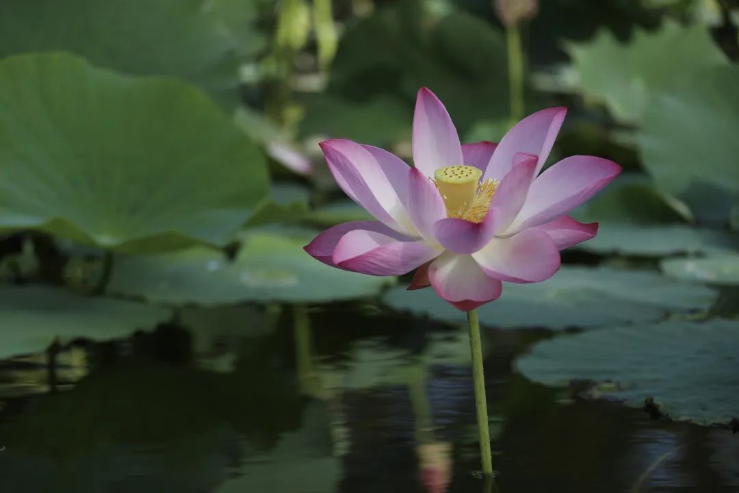 接天莲叶无穷碧,映日荷花别样红。茫茫无边的戈壁中间,有一块绿洲,绿洲正中是一方面积不大的小池塘,岸边垂柳依依,池中莲花盛开,幽香散溢,沁人心脾。进入夏季,荷花竞争开放。“东风可采莲,莲叶何田田。”一时间,“大漠赏荷”成为了东风航天人新的网红打卡地。
