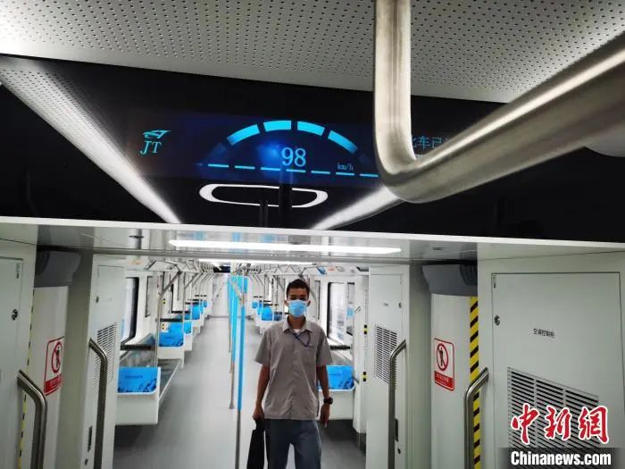 图为江跳线(试乘)列车上,屏幕实时显示运行速度。 中铁建重庆投资集团供图
