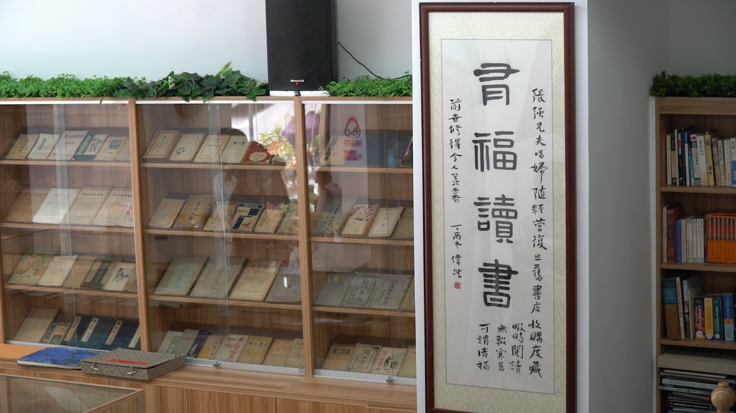 复旦大学张伟然教授所题的“有福读书”,旁边是新开辟的古籍善本展示区