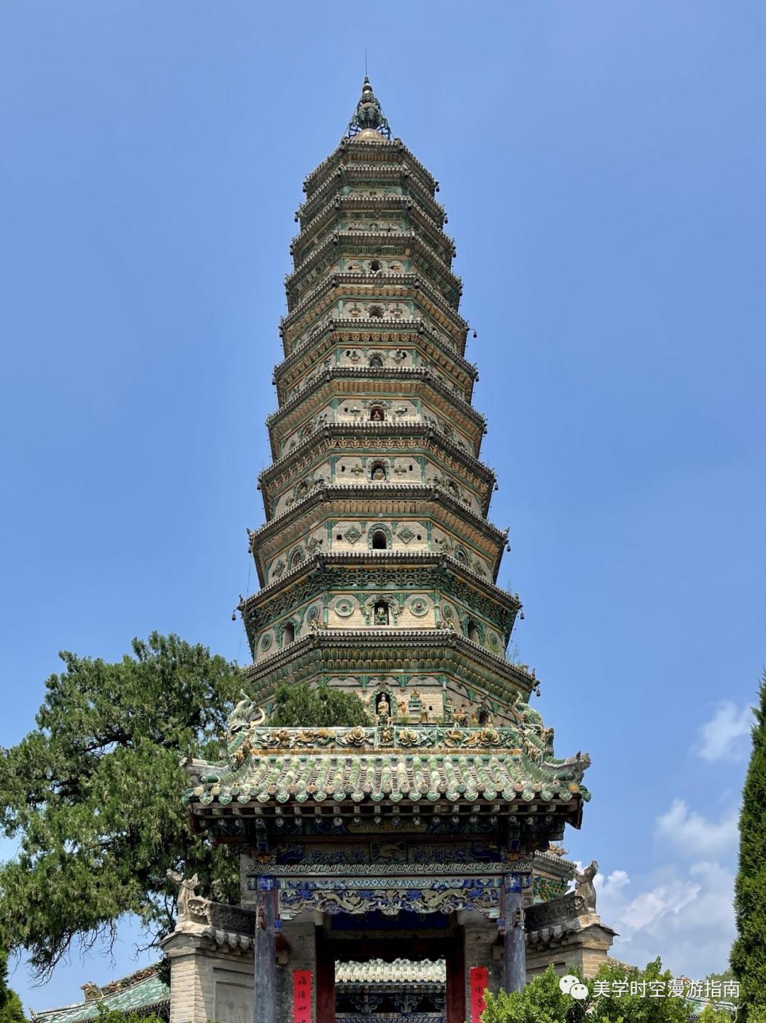 这塔最出名的应该是86年《西游记》。在“扫塔辩奇冤”一集里唐僧扫的那座砖塔。塔于明朝嘉靖六年(1527年)建成,并在100年后全塔身加装琉璃。历经战乱、地震,宝塔尤在。