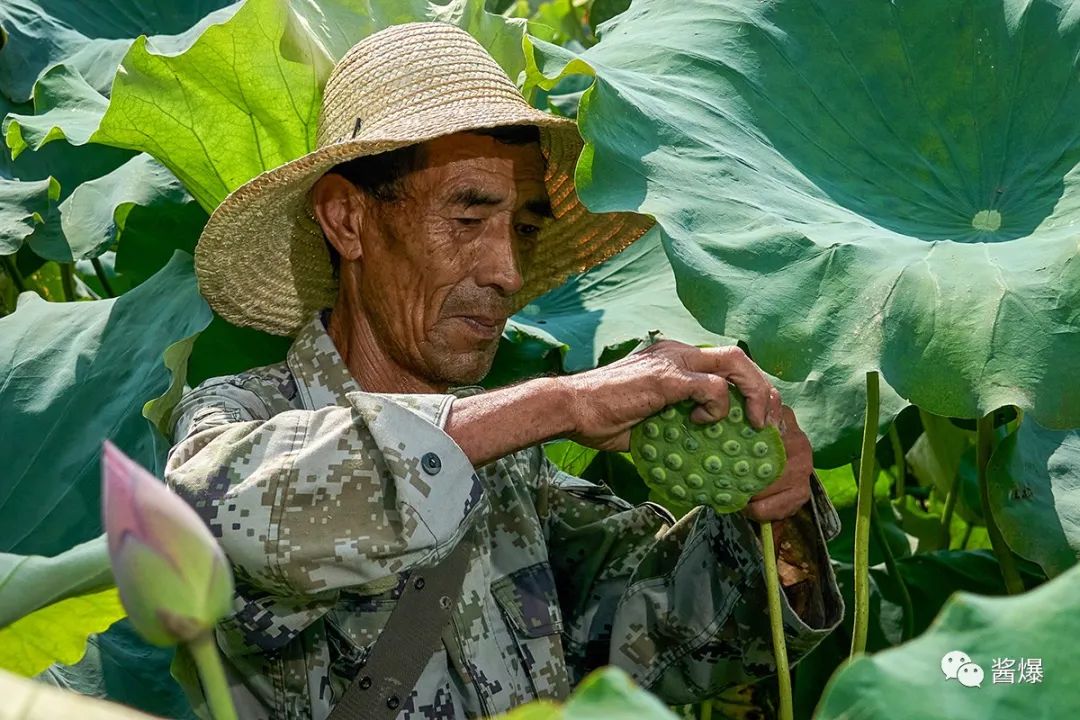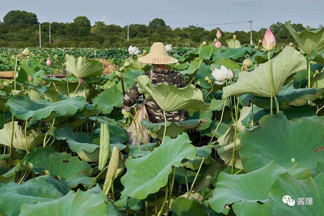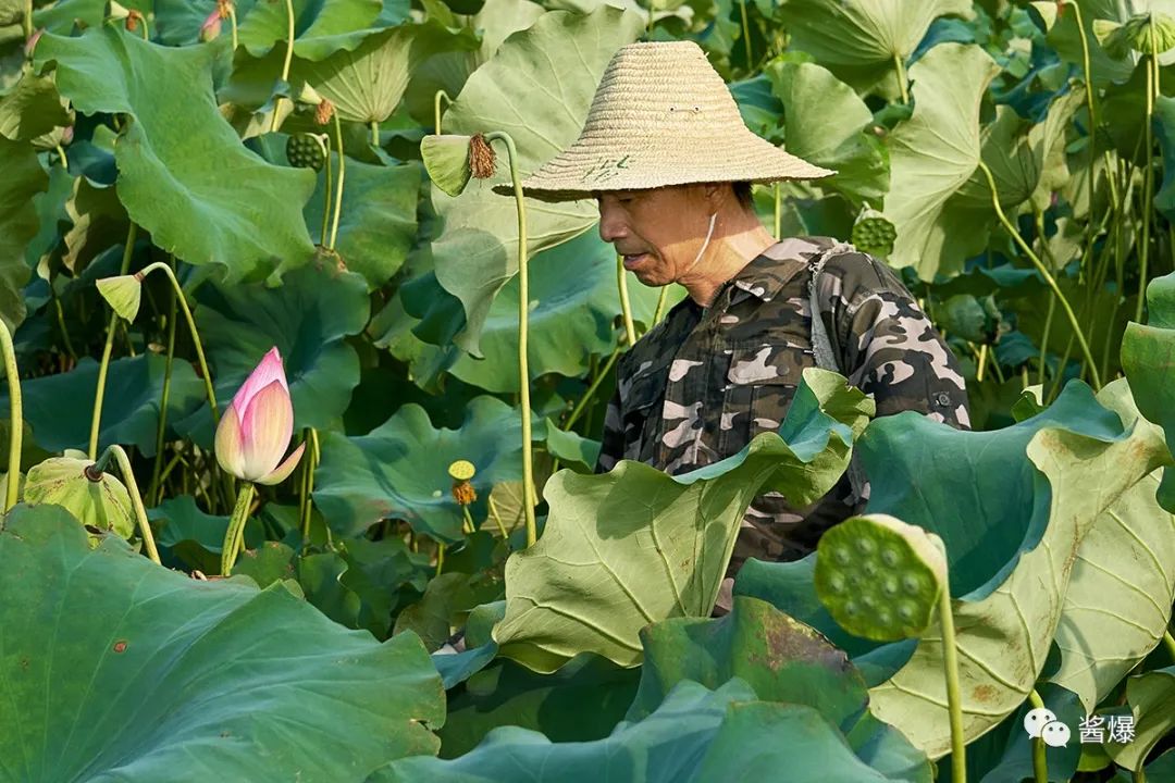 “荷花一身都是宝,嫩莲蓬当水果吃,老莲蓬可以做干莲子,荷叶和莲芯可以做荷叶茶和莲芯茶,莲子可以酿酒,莲藕可以做藕粉,莲子衣还是一味中药,有活血化瘀的功效。”“荷花的种植不是很难,就是采摘辛苦,日晒水蒸的。荷花不怕晒,天气越热,长势越好。今年夏天热到40度,人难受了,荷花欢快了。”