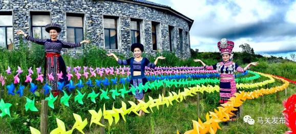 在七彩风车草坪上,几个身穿民族服装的游客正在拍照、录视频,想把马关的美分享给更多的人。